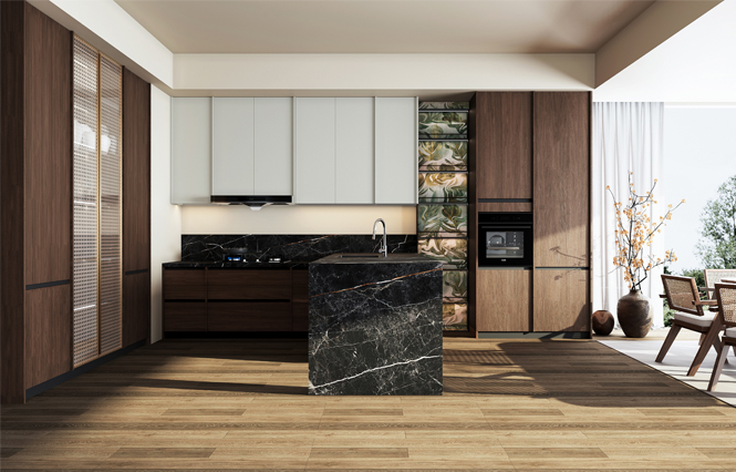 通过Z6尊龙厨柜量体裁柜,定制出适合主厨下厨的烹饪区和洗涤区的舒适高度。